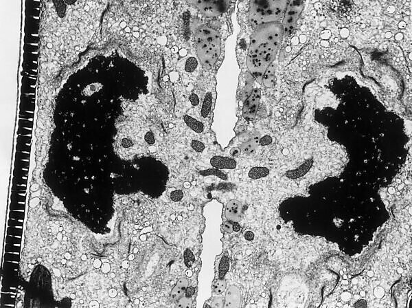 Cilliate undergoing cytokinesis, with the cleavage furrow being clearly visible. A plant cell could not make a cleavage furrow if it tried the cleavage furrow forms during telophase of mitosis and cytokinesis. This is called furrowing because a cleavage furrow forms between the two halves of the cell. John carmen on 08 apr 21:45. The furrow deepens as spindle breaks down.
